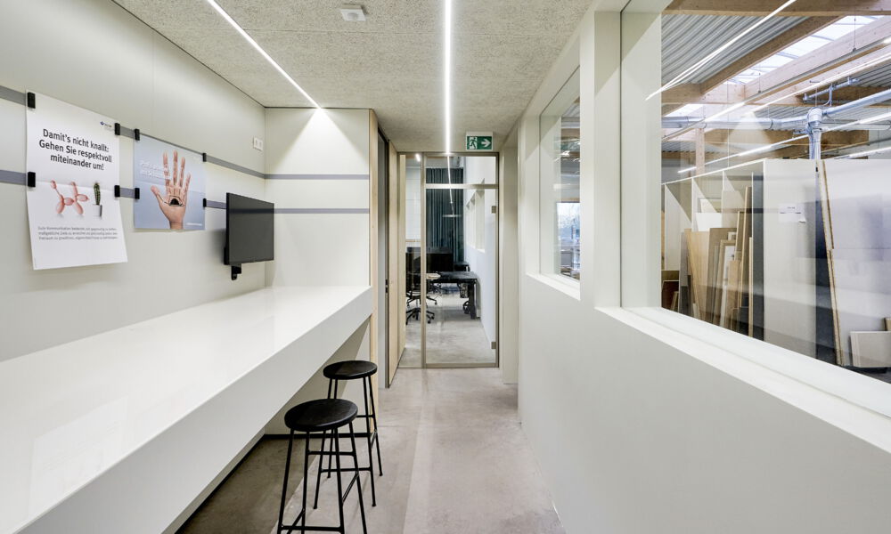 Den passenden Arbeitsplatz finden sie im Coworking-Bereich, der in unsere Verwaltungsfläche integriert ist.