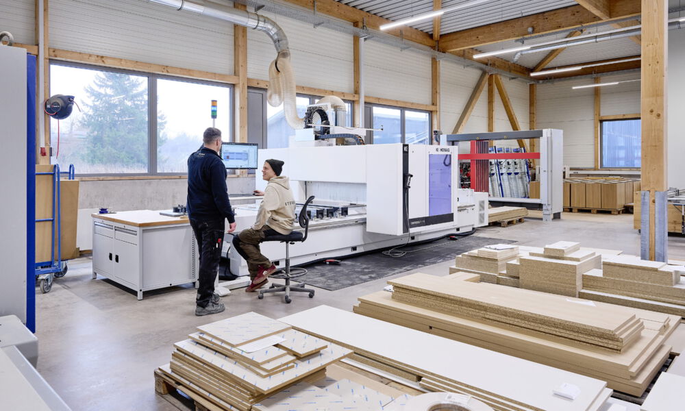 Bei uns können sich Externe in die Werkstatt und unseren topmodernen Maschinenpark einmieten, inklusive Lagerfläche.